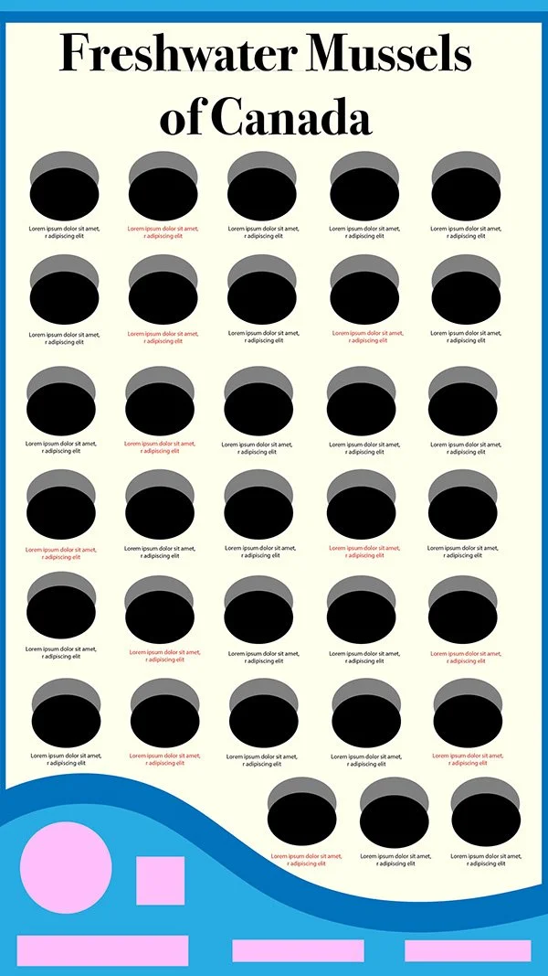 Designs created for the re-design of the Official Freshawater Mussels of Canada poster.