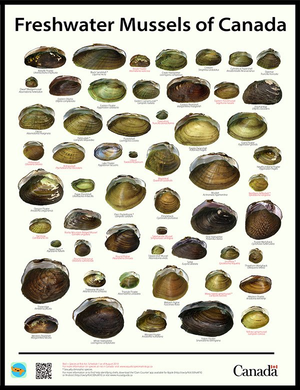 Left: Final draft of the Official Freshawater Mussels of Canada poster.