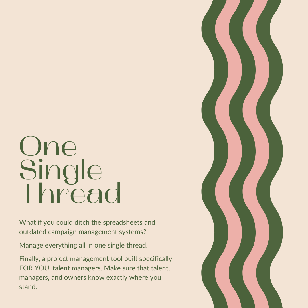 Social media content I created for the launch of The Thread, Shine Talent Group’s talent management software. Created to evoke the vintage vibe and timeless aesthetic of Southern California and Palm Springs.